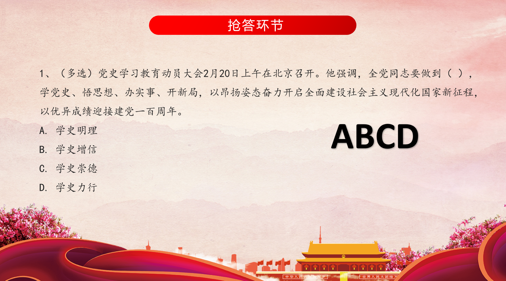 为检验同志们的学习成果,设置了趣味抢答环节,党员同志们全神贯注、思维敏捷、反应迅速,共同完成多项选择与填空题,线上会议的气氛严肃而又热烈,紧张而又活泼。
